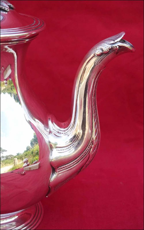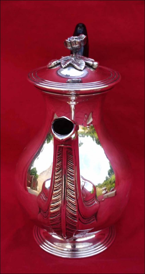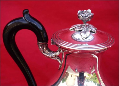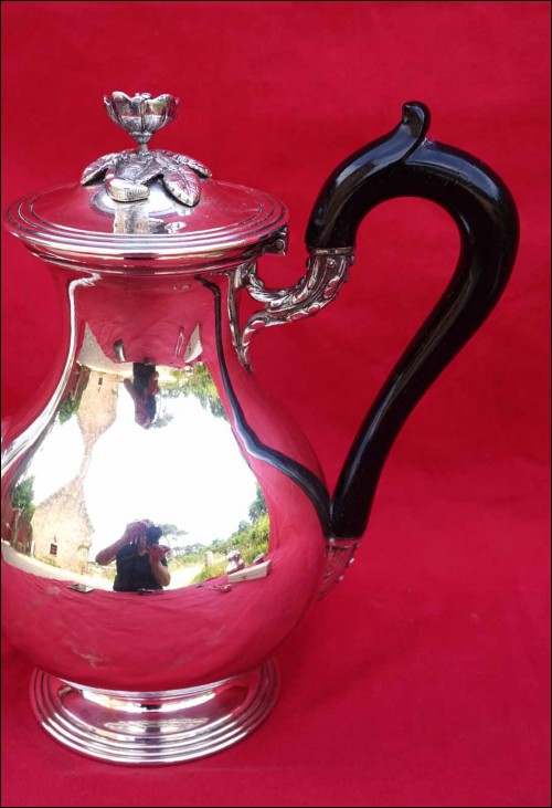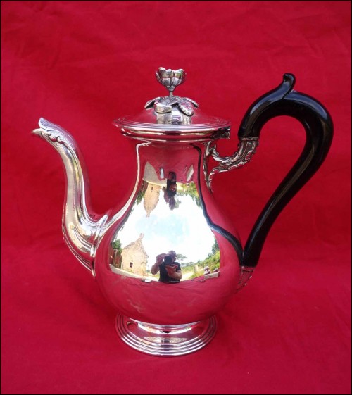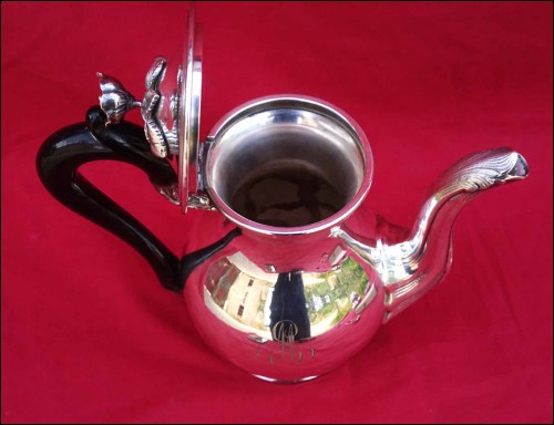 Silver Plate Tea Coffee Pot Ebony Handle A Fresnais Paris Mono SM Late 19th C