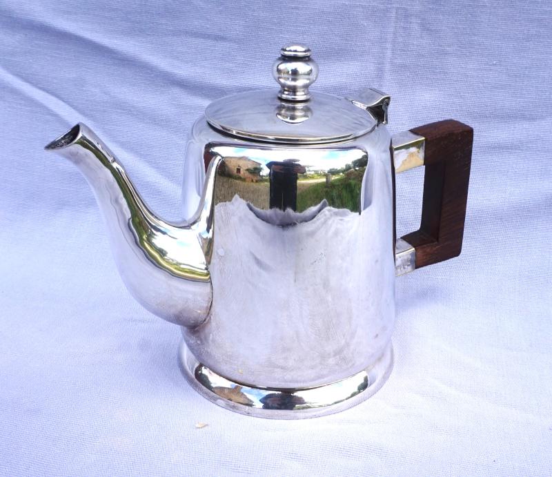 Silver Plate Tea Pot Rosewood Handle SIS Paris Mid Century Modern 1950's