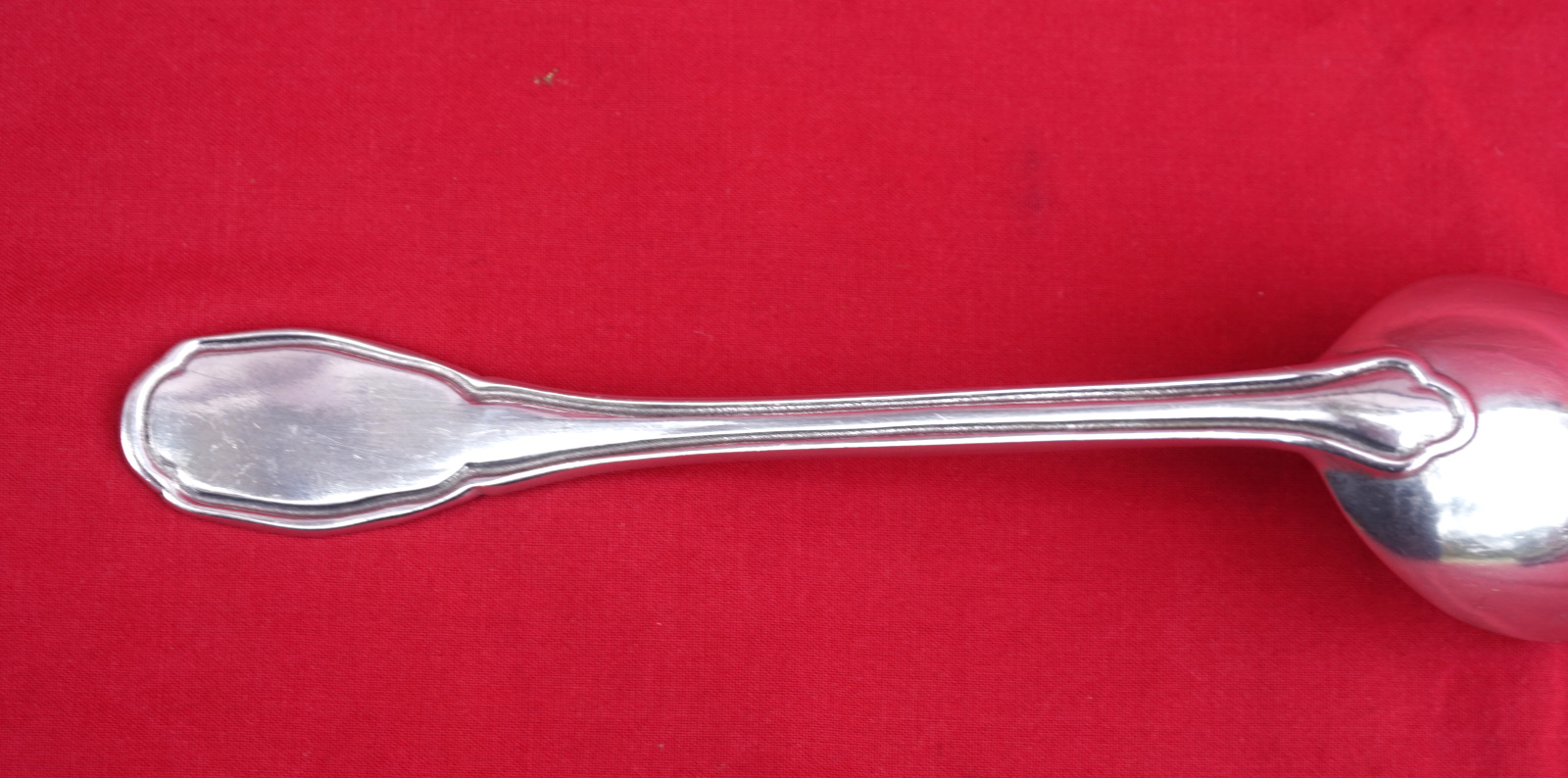 French silver plated punch, cordial, fruit spoon, laddle in Louis XV style made during the 1960's. 5" (12.6cm) length. Beautiful condition, the brilliant is slightly used.