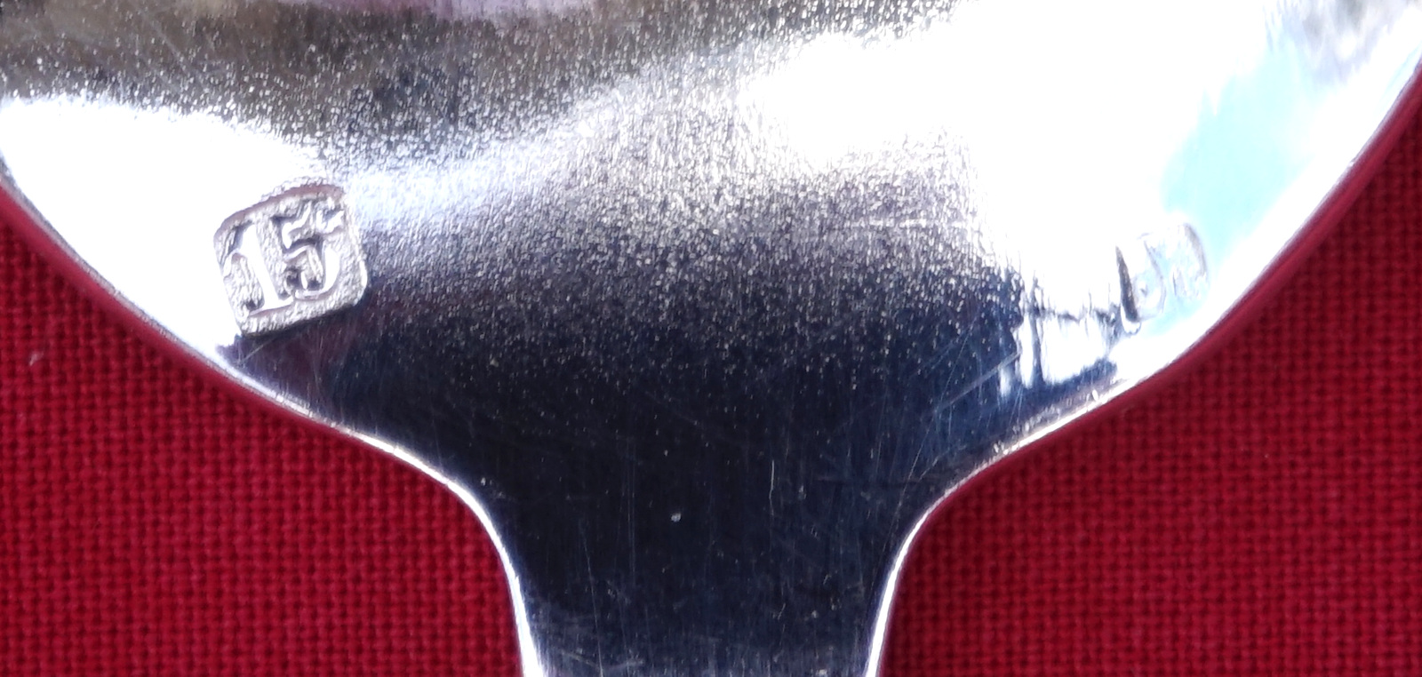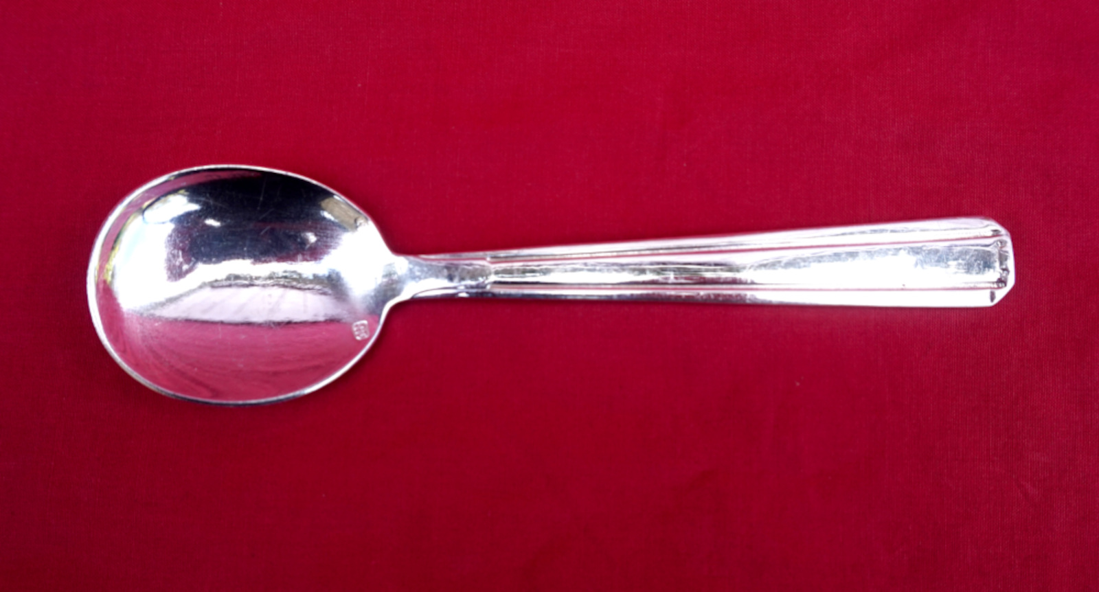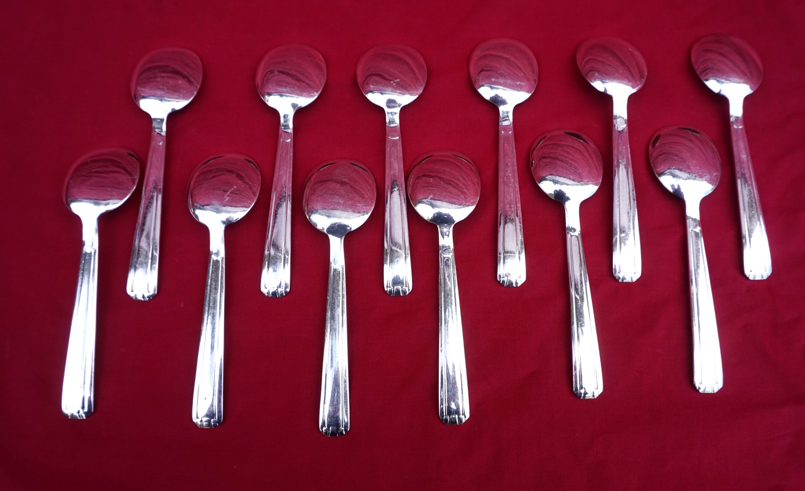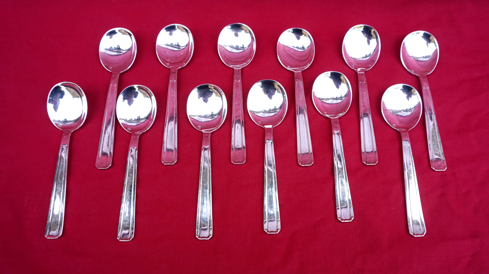 12 Cuillères à glace Art Déco en métal argenté vers 1940. Elles sont poinçonnées de la marque d'orfèvre. 13.2cm long. Parfait état.