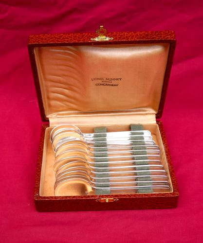 Silverplate Art Deco 12 Ice Spoon Boxed 1940's Paris
