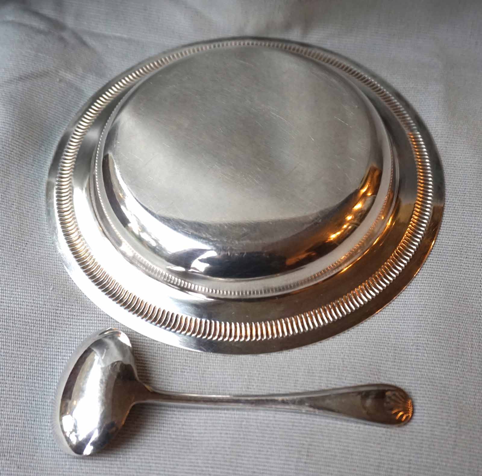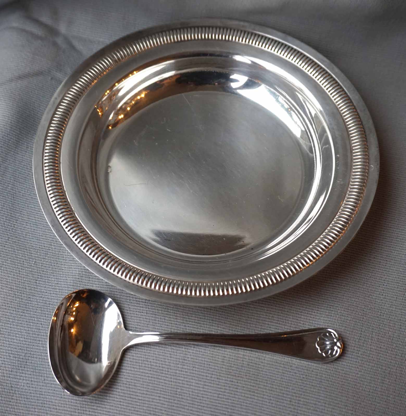 Vintage french silverplate baby set with plate and spoon made during the 1950's. They are hallmarked. 6 1/2" (16.8cm) diameter 1" (2.5cm) height for the plate and 5" (12.7cm) length for the spoon. Perfect condition with original box.