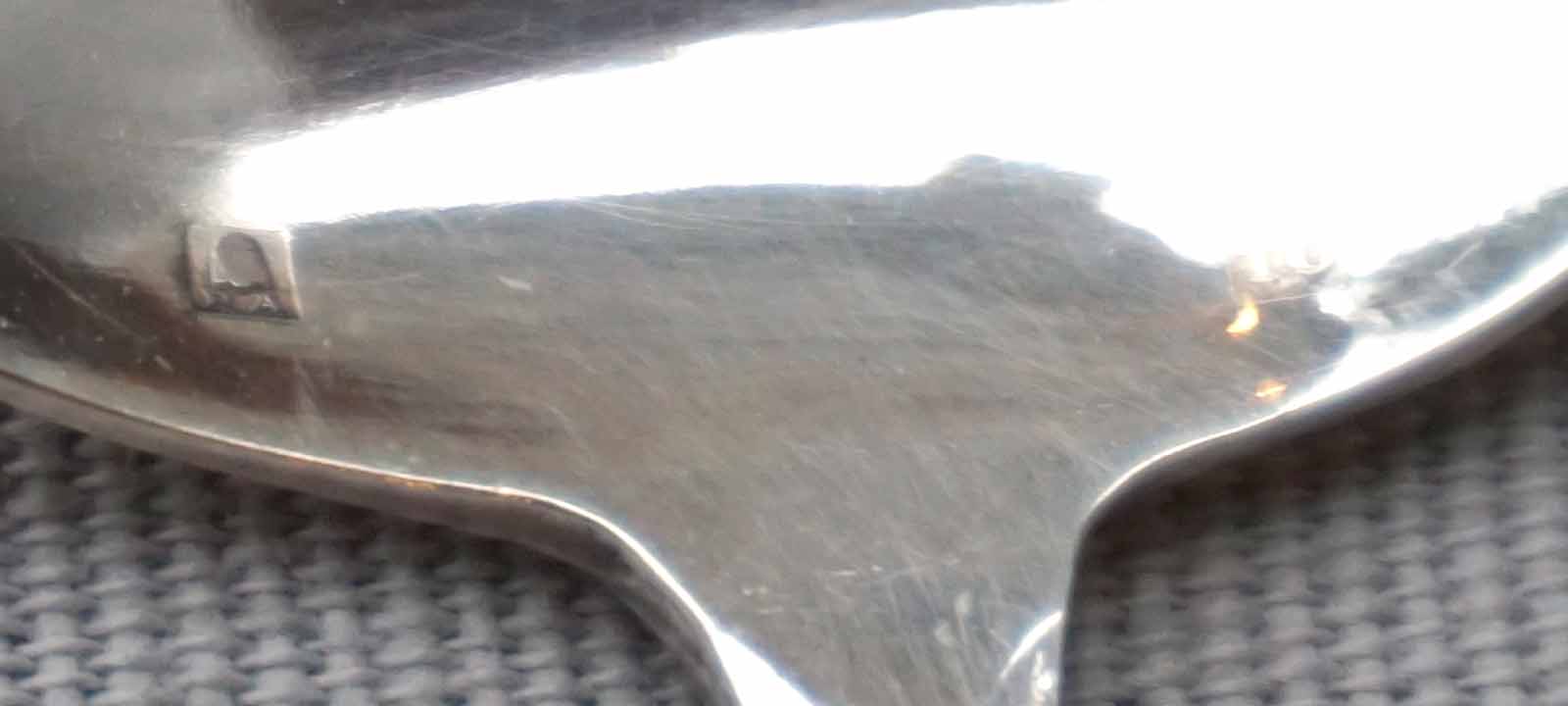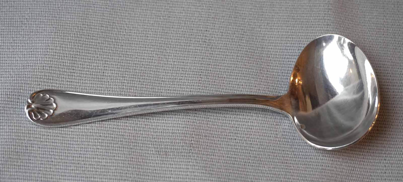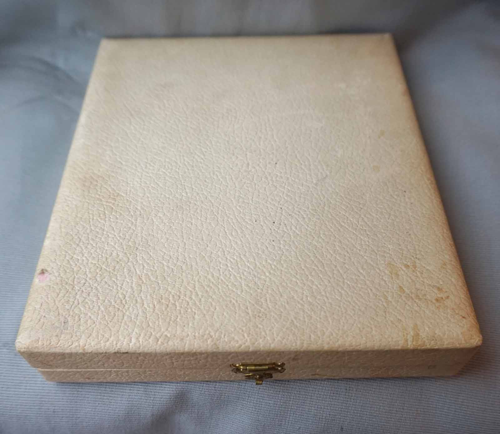 Service enfant Assiette Cuillère à bouillie, vers 1950. Diamètre  de l'assiette 16.8 cm, hauteur 2.5 cm, longueur de la cuillère 12.7 cm. Très bel état, écrin d'origine.