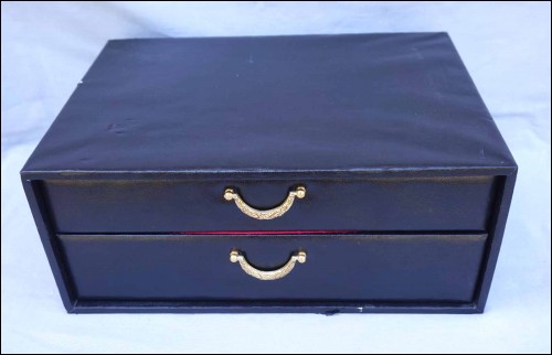 French silverplate flatware Senlis model made by Pierre Meurgey Paris. The flatware include: 12 dinner forks and spoons (8 1/4", 21cm, length), 12 dinner knives 9 3/4" (24.8cm), 12 coffee dessert spoons (5 1/2", 14cm), 12 cake dessert forks (5 1/2" (14cm), salad serving set, vegetable serving set, gravy sauce serving spoon, pie cake spade, laddle and sugar tongs. All the 68 pieces are hallmarked with the silversmith mark. The flatware comes in 2 drawers chest. Perfect condition as shown by the following pictures.
