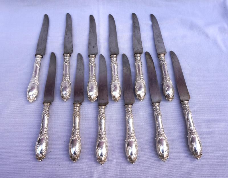 Sterling Silver 12 Dinner Knives 9 3/4" Louis XV style Late 19th C