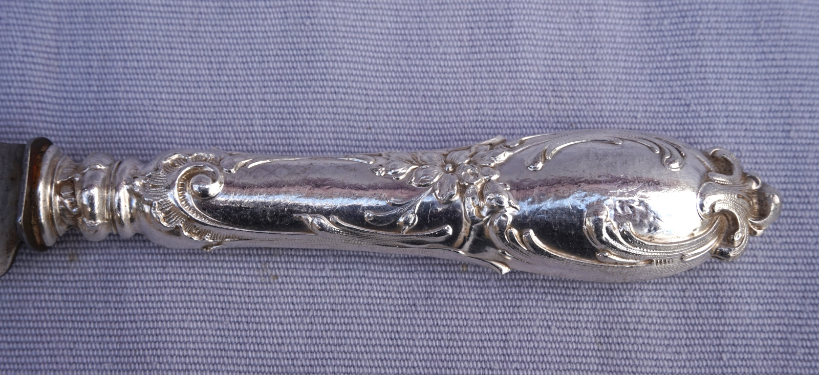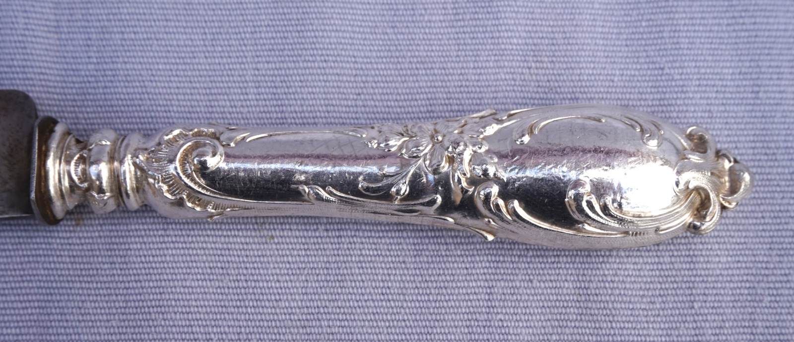 Ensemble de 12 couverts de table manche argent fourré de style Louis xv et lames aciers , fin XIX° siècle. Ils sont poinconnés à la Minerve. Longueur 24.8 cm. Bel état.