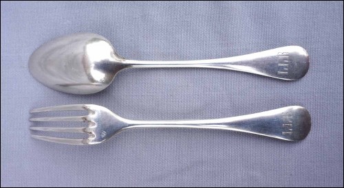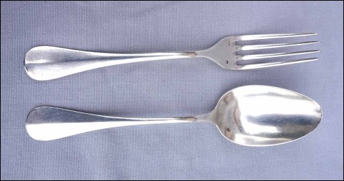 Sterling Silver Dinner Fork Spoon Set Mono LLR Boulenger Paris
