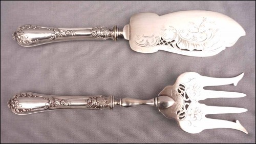 Sterling Silver Fish Serving Set Louis XV Style Fork Knife 1900
