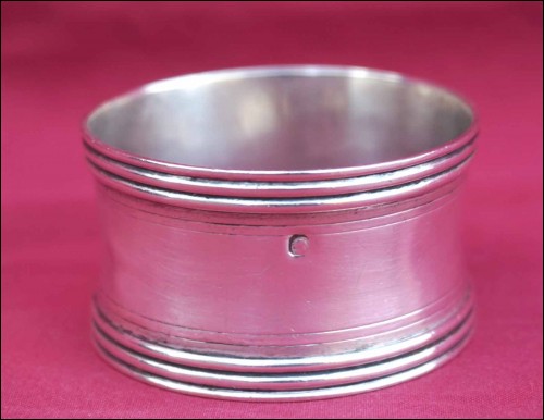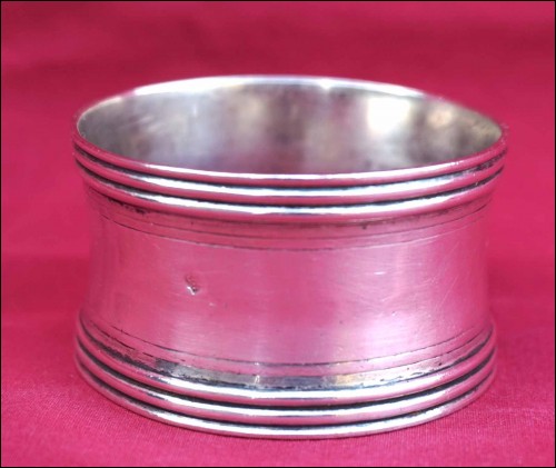 Rond de serviette en argent massif, milieu XIX° siècle. Il est poinçonné de la tête de Minerve et d'une marque d'orfèvre. Diamètre 5 cm, hauteur 2.9 cm, poids 27 gr. Très bel état.