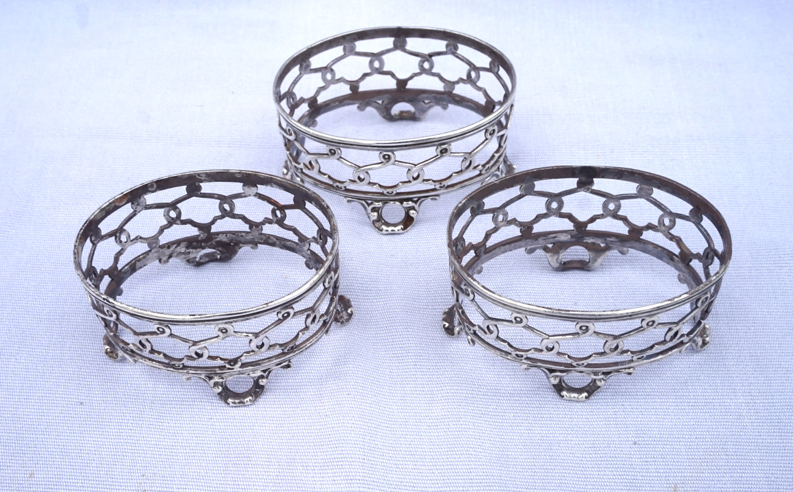 Sterling Silver Open Salt Cellar Stand Set of 3 Late 19th C 152gr