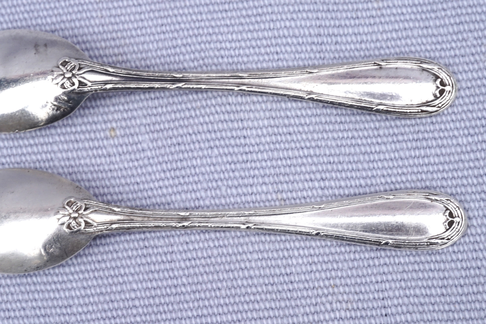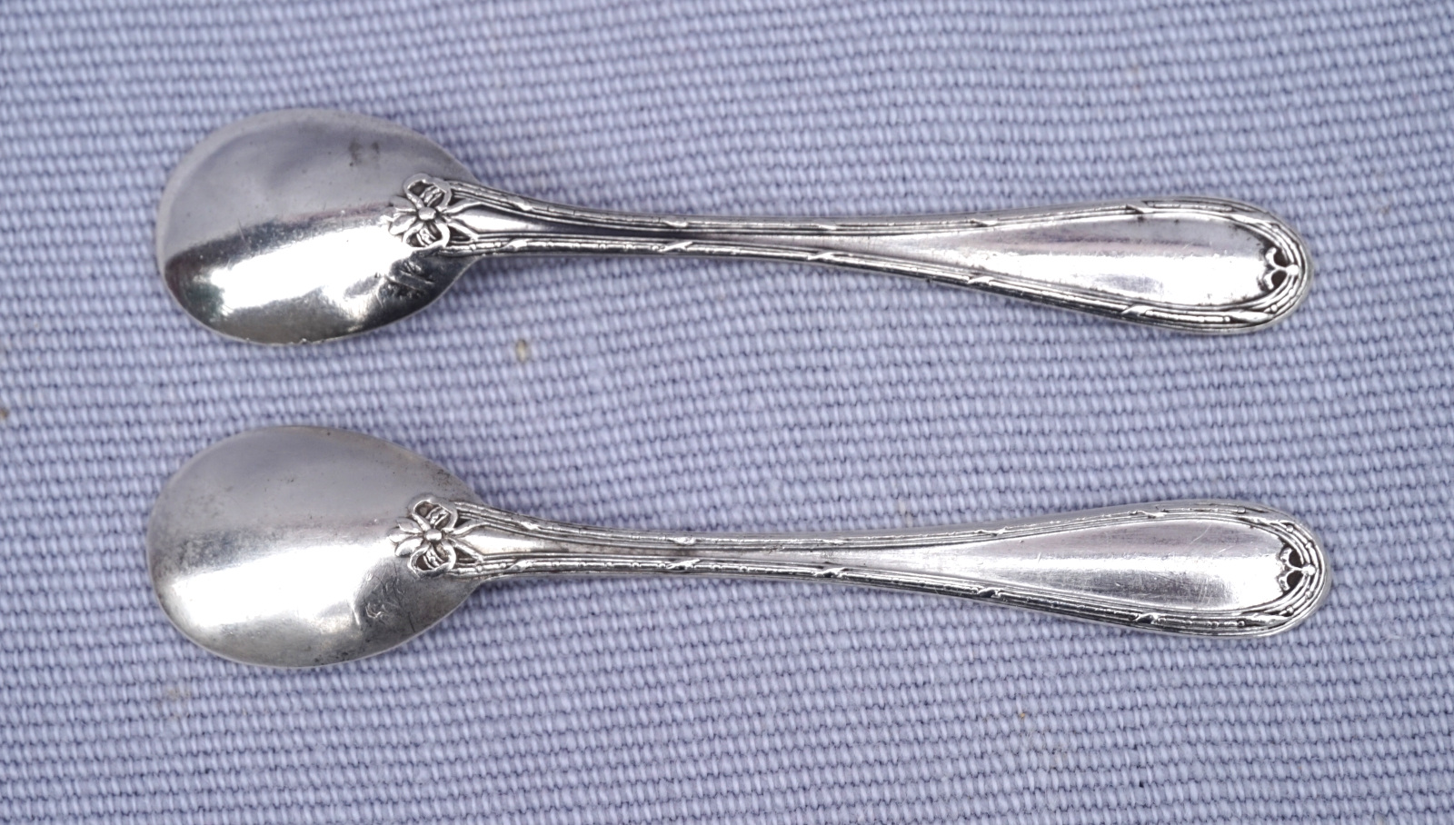 Sterling Silver Salt Spoon Pair Filet Thread 1900's