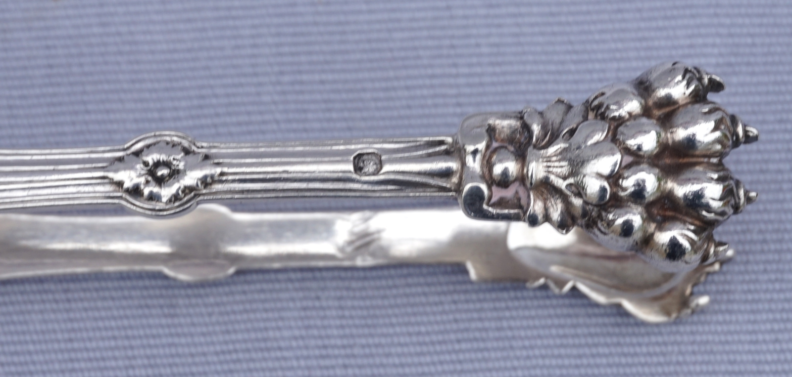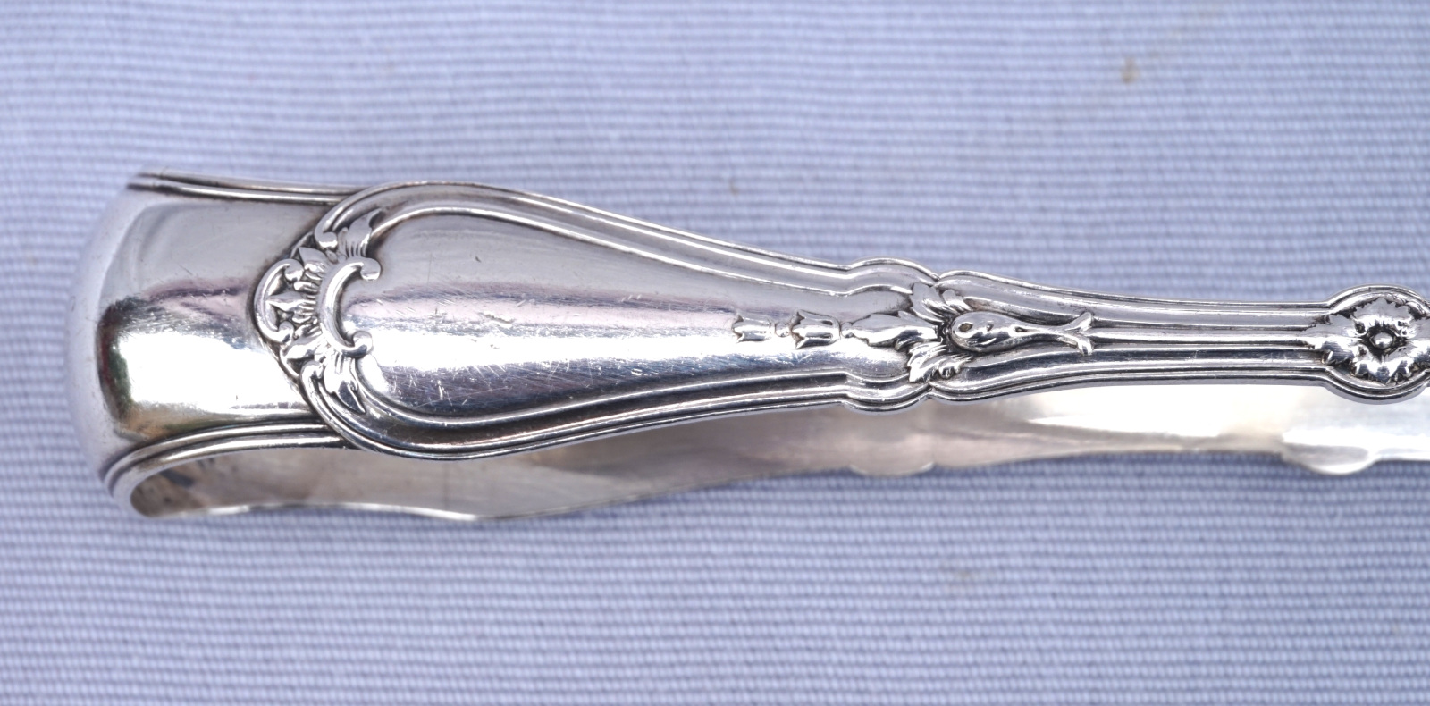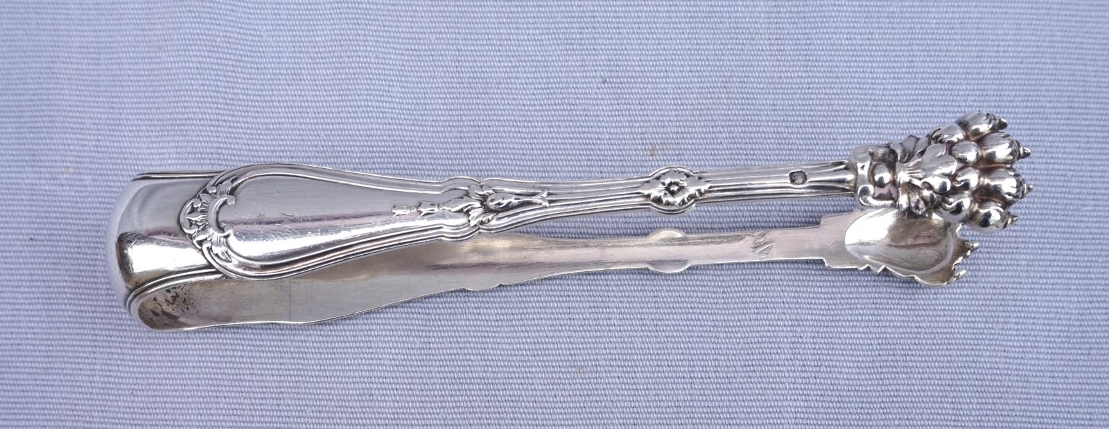 Pince à suvre en argent massif  avec des griffes de lion, milieu XIX° siècle. Elle est poinçonnée de la Minerve. Longueur 16 cm, poids 76 gr. Parfait état.