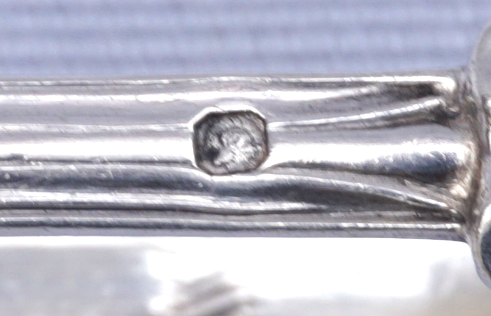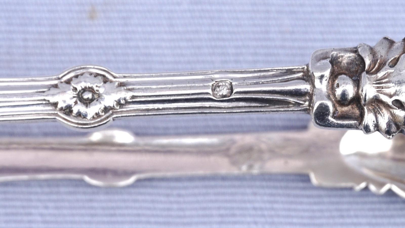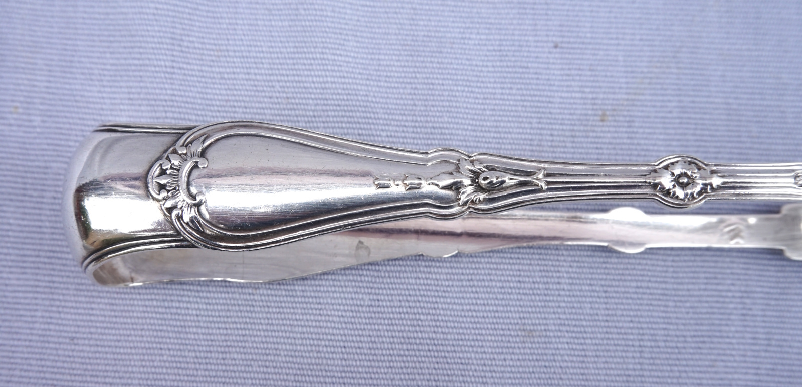 Pince à suvre en argent massif  avec des griffes de lion, milieu XIX° siècle. Elle est poinçonnée de la Minerve. Longueur 16 cm, poids 76 gr. Parfait état.