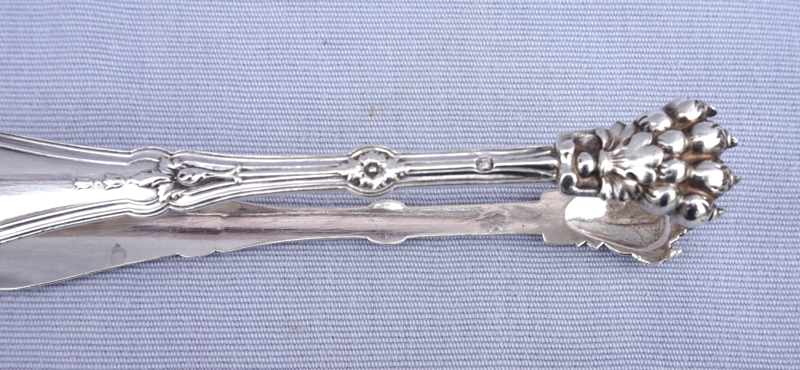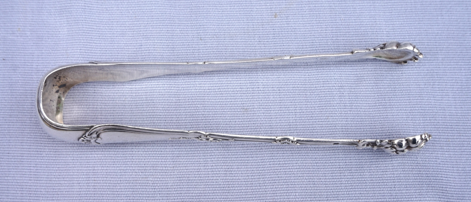 French sterling silver sugar tongs with lion clas made during the middle of the 19th century. It's hallmarked with the hed of Minerva, french sterling silver (.925) guarantee. 6 1/4" (16cm) length, weight 2.68 oz (76 grams). Perfect condition.