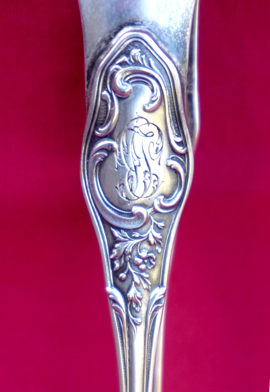 French sterling silver sugar tong in Louis XVb style with monogram JC made by Hénin & Vivier Paris during the 1880's. It's hallmarked with the head of Minerva, french sterling silver (.925) guarantee. 5 1/4" (13.5cm) length, weight 47 grams. Perfect condition.