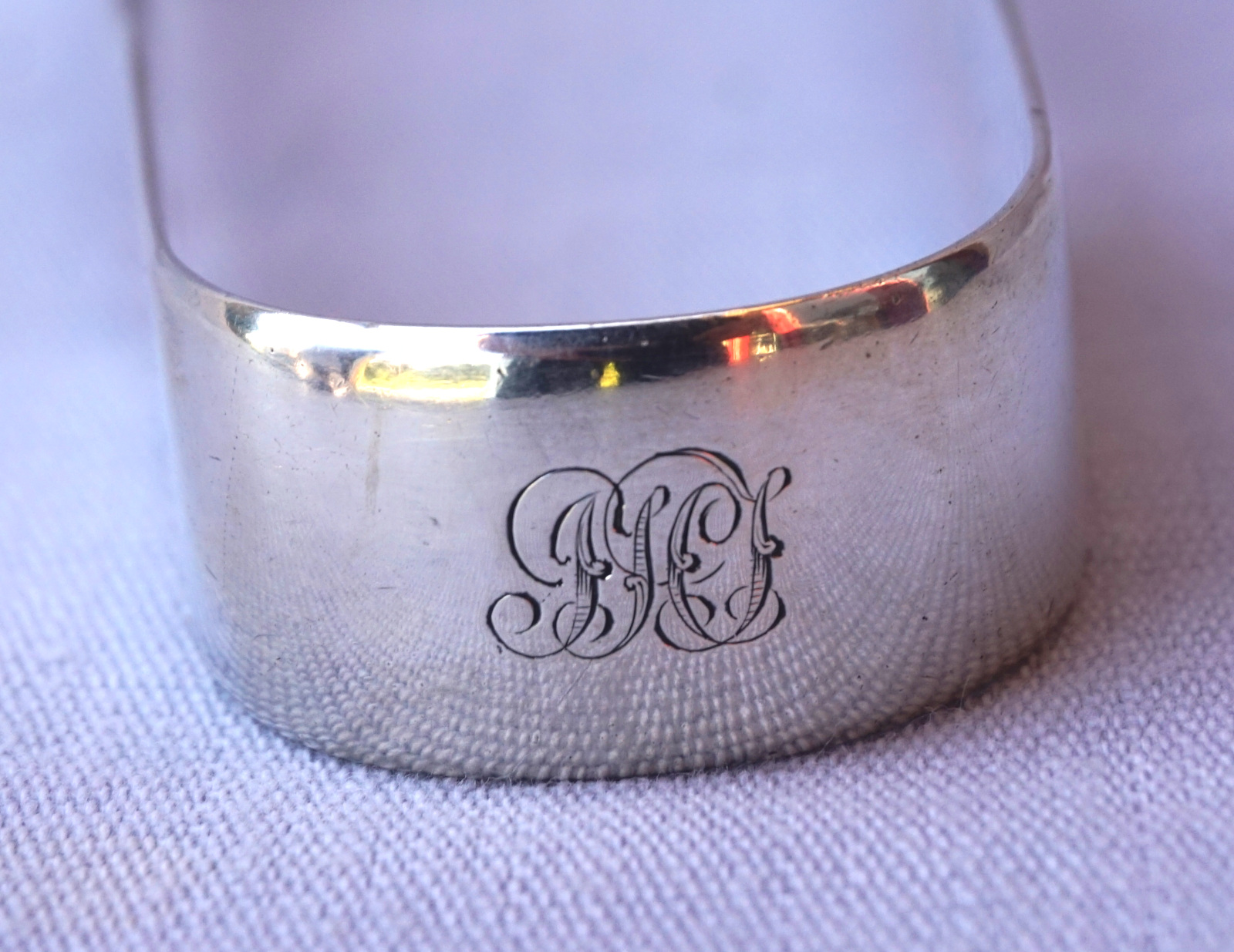 Pince à sucre en argent massif monogrammé HEJ ? par JS OVER AS dans un rectangle, Joseph II et Albert Savory Londres 1838 poinconné. Longueur 14.5 cm, poids 52 gr. Très bel état.