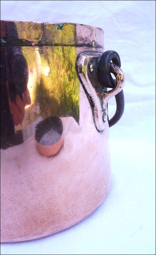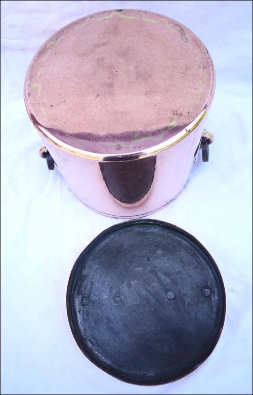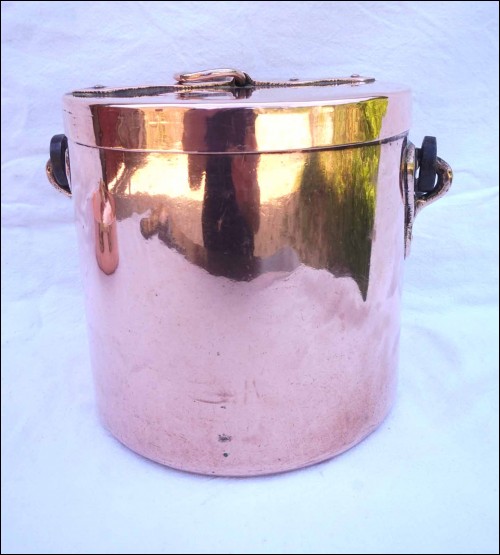 Tined Copper Lidded Stewpot Dovetailed Wrought Iron Handle 19th C