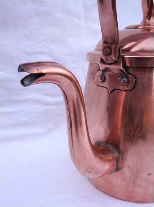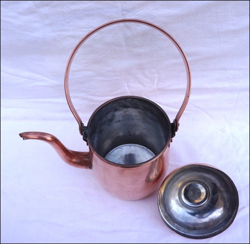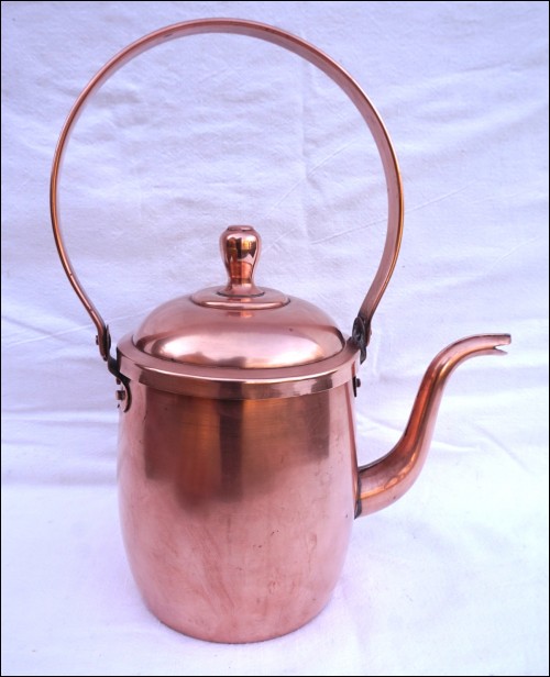 Vintage English Tined Solid Copper Tea Kettle Tea Pot 3Qt