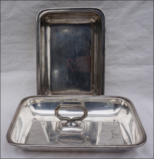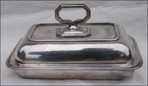 Lidded Warmer Dish Holding Plate made by Johnson Durban & Co silversmith (1875/1952) from Birmingham during the 1900's. It's made of silvered metal by electrolyse EPNS and you can remove its handle. Signed and numbered. Height 5 1/4" (14 cm), Length 10 5/8" (27 cm), Width 7 1/8" (18.2 cm).Very nice state of use, slight oxidations, as shown by the following pictures.