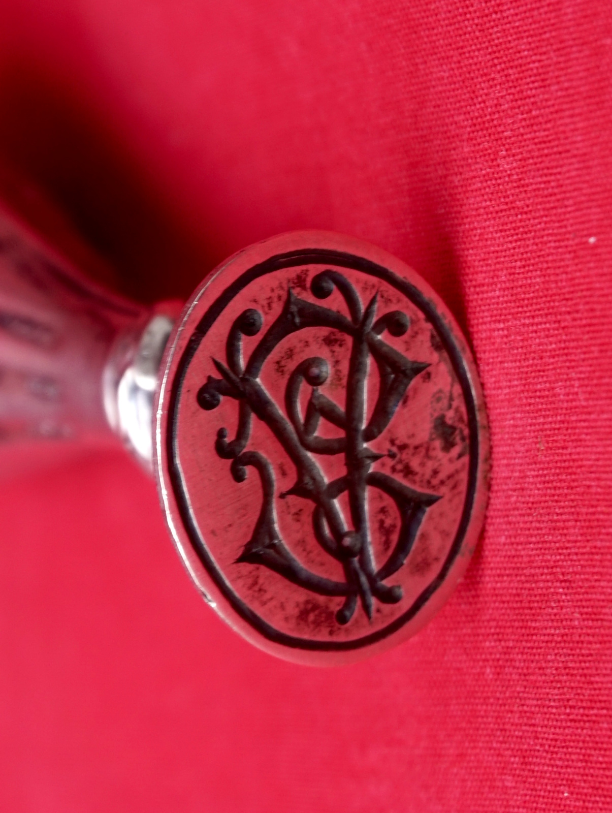 Wax Seal Sterling Silver Stamp Monogram VC Late 19th C