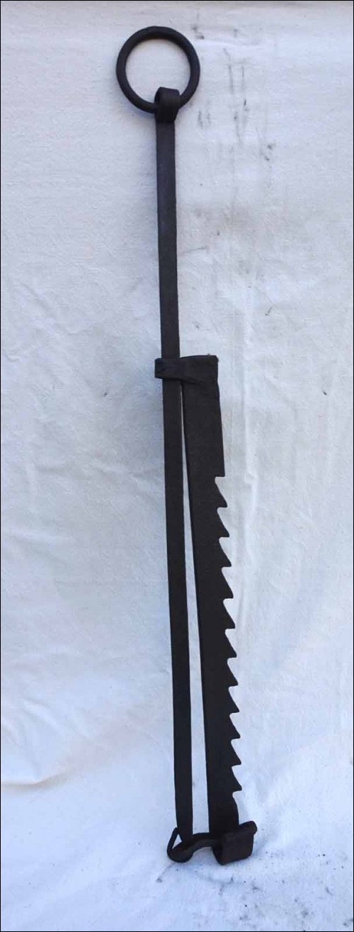 French wrought iron sawtouth trammel made during themiddle of the 19th century. It measures 51 1/2" (131cm) in the fully expended position and 42 7/8" (99cm) in the smallest position, weight 3lb 11,54oz (1,688 kilograms). Perfect conditon with beautiful patina as shown by the following pictures.