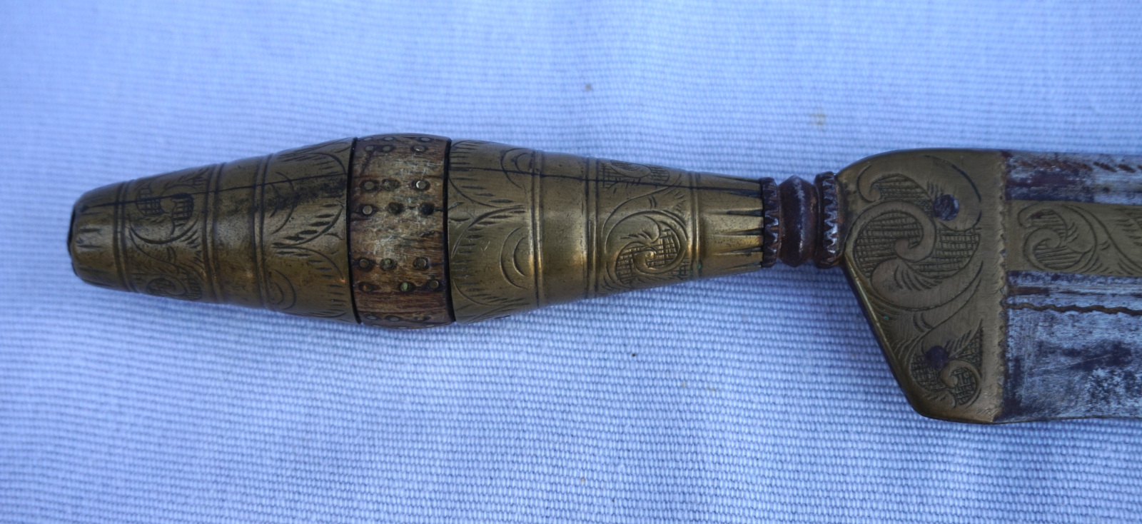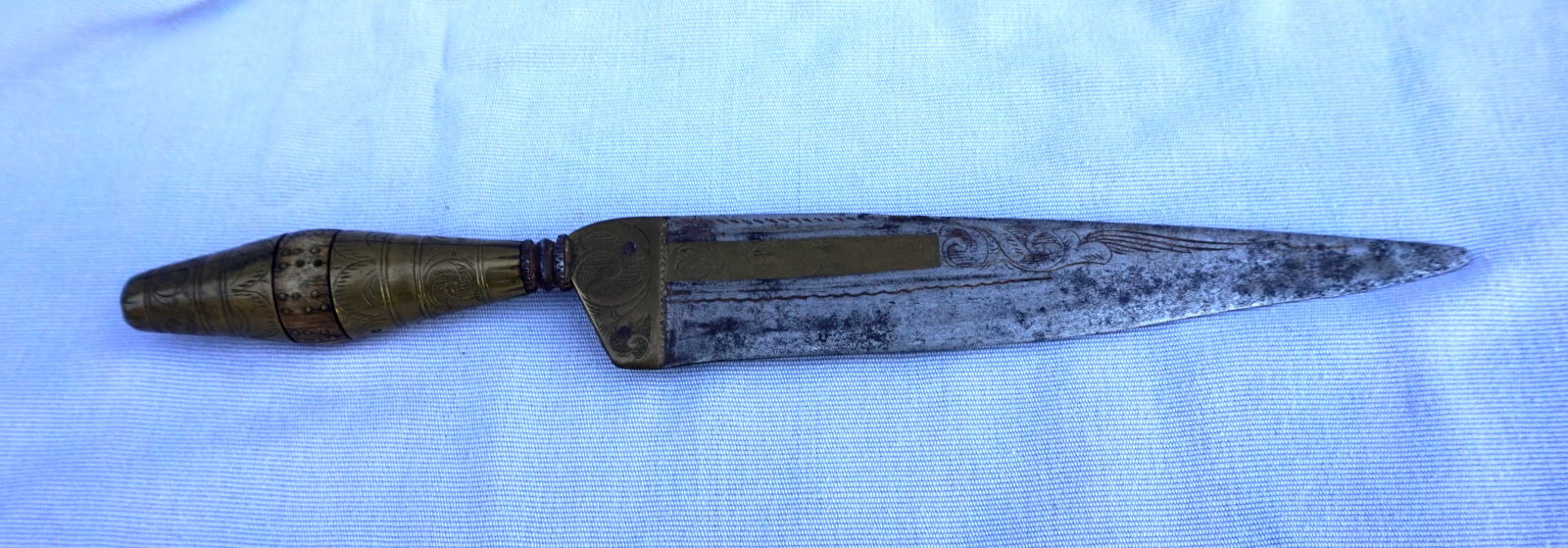 Hunting Dagger Engraved Inlayed Brass Wrought Iron Andalusia 18th C