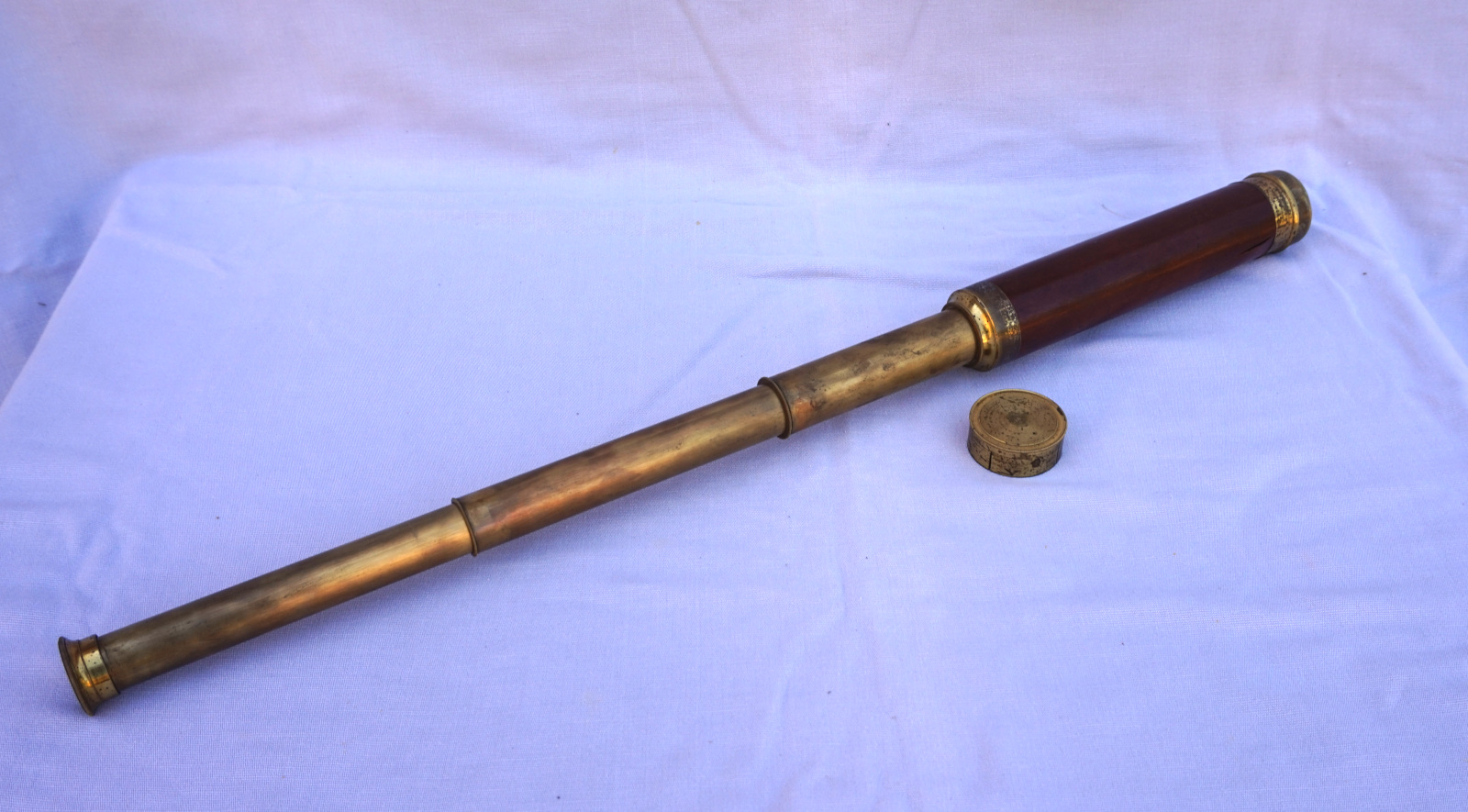 Spyglass Telescope Brass Mahogany 28" Late 19th C