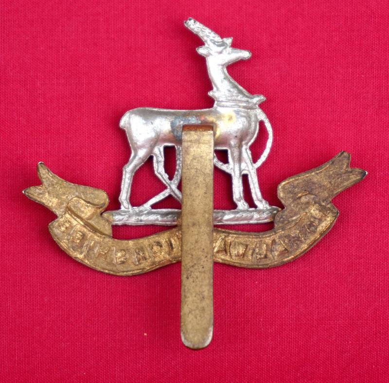 Royal Warwickshire Cap Badge using during the WW1. 1 3/4" (43mm) height, 2 1/8" (55mm) width. Beautiful condition.