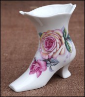 Miniature Shoe Transferware Porcelain Roses Tientsin China