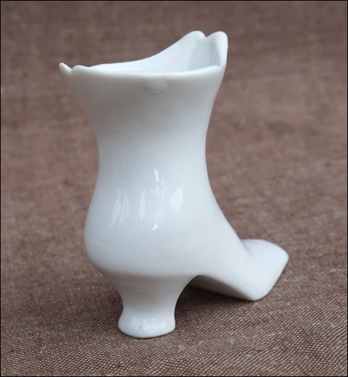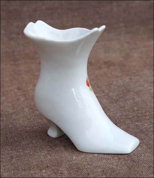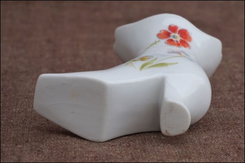 Bottine en porcelaine de Chine décor par transfert surement Tientsin porcelain, vers 1980. Longueur 10,4 cm, hauteur 9,3 cm.