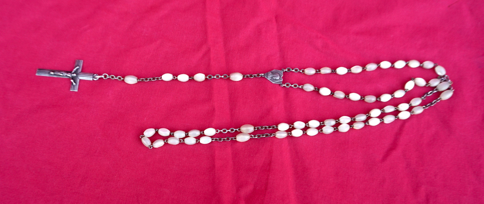 Rosary Christ Crucifix Virgin Mary Sterling Silver Mother of Pearl Beads