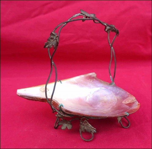 Mother of Pearl Oyster Brass Tidy Trinket 1900