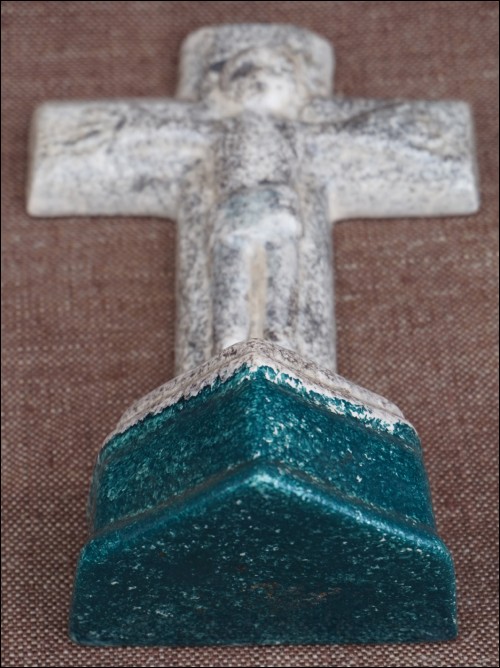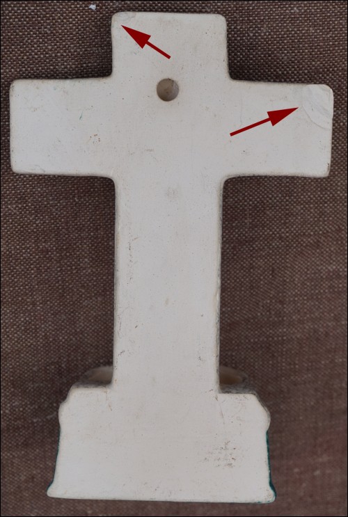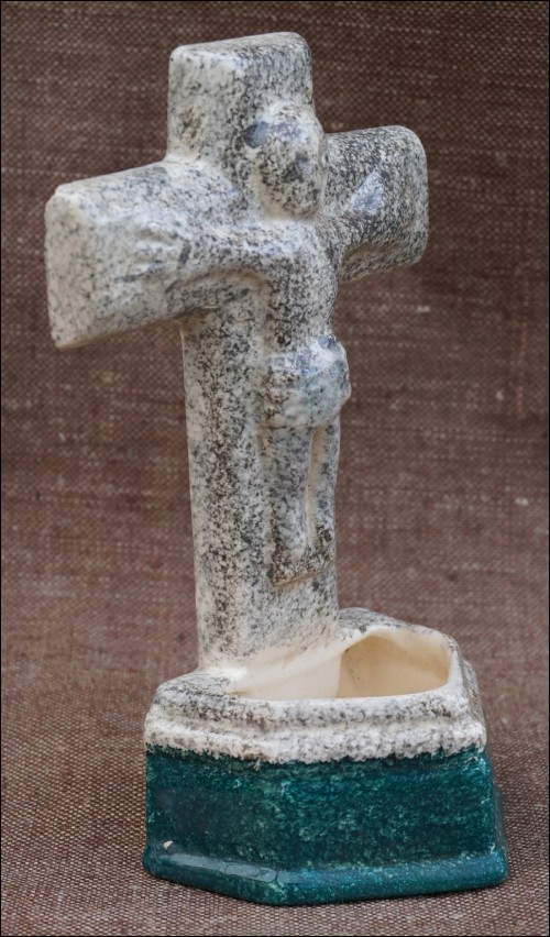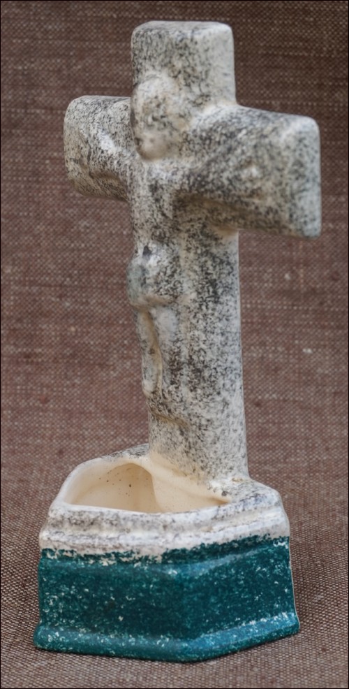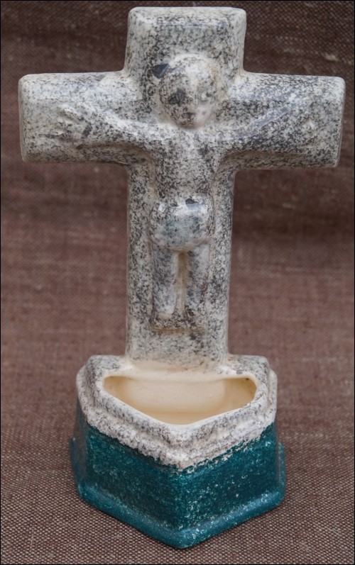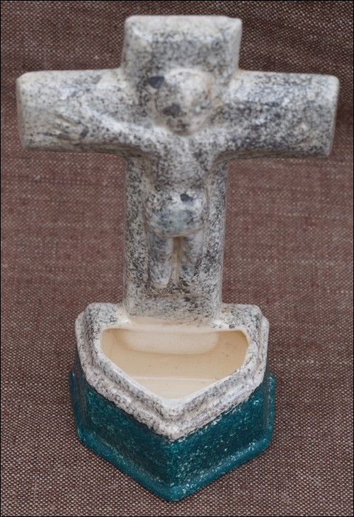 Christ Crucifix Holy Water Font Faience Brittany 1960