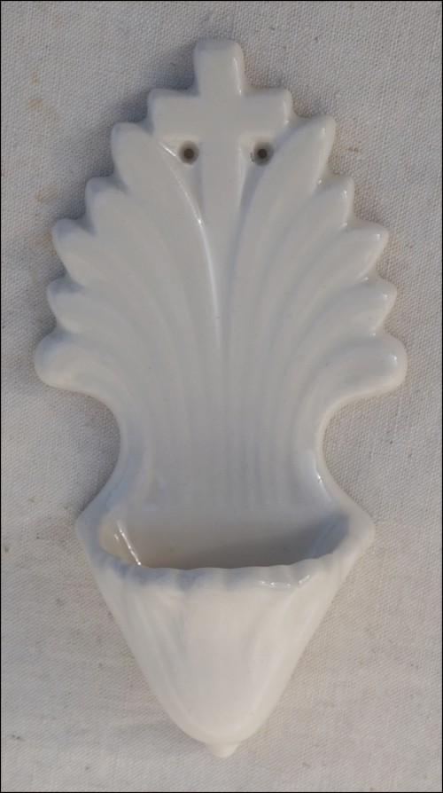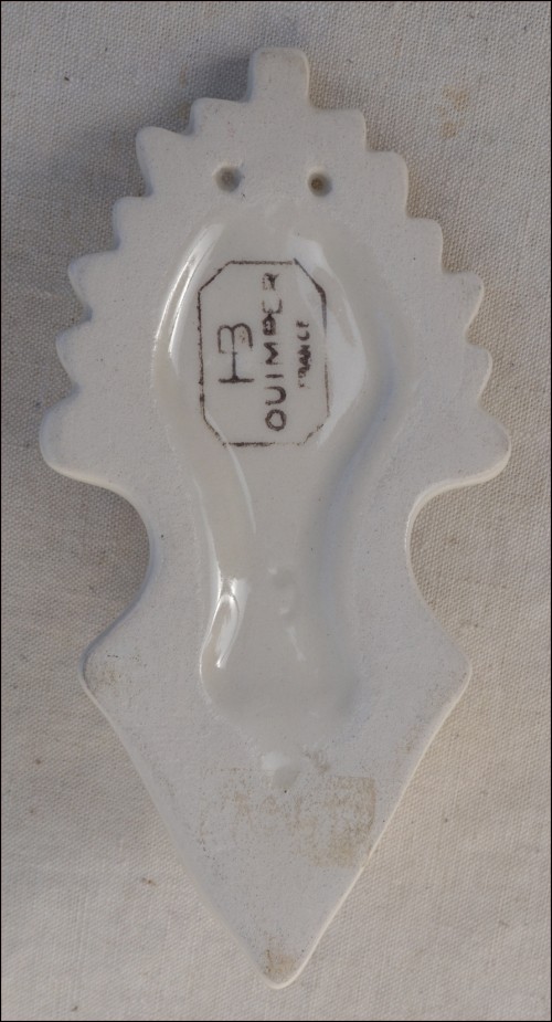 HB Quimper Art Deco Wall Holy Water Font White Faience