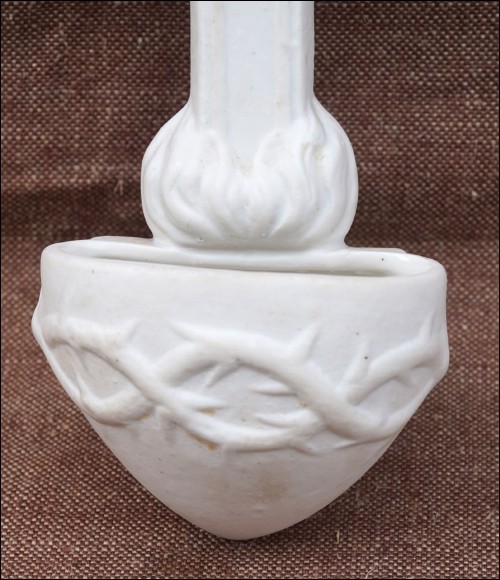 Holy Water Font Gothic Cross Crown of Thorns Porcelain