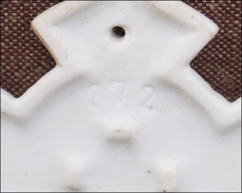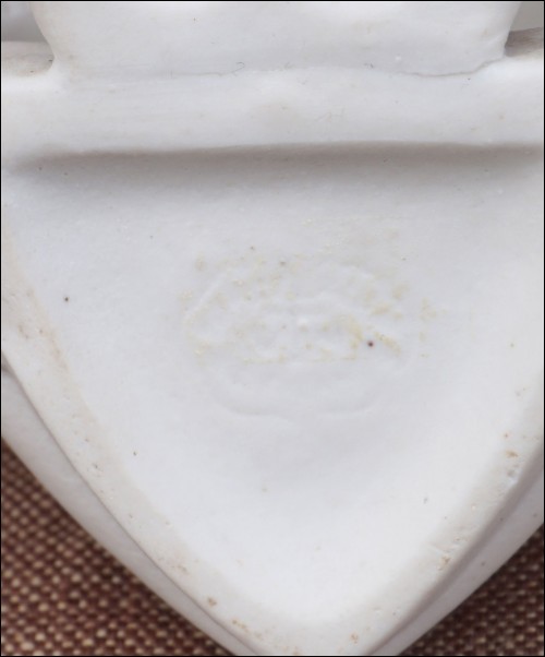 Bénitier de chevet en biscuit par Mauger Fils & Pezé à Villenauxe (L'isle adam) Sainte Croix gothique et la couronne d'épine, fin XIXème siècle. Très bel état. Il est signé sur son fond de la manufacture, moule 372. Hauteur 17,5 cm, largeur 9 cm.