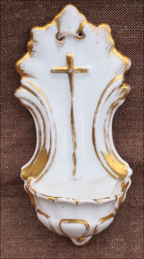 Holy Water Font Holy Cross Gilt Porcelain Paris 1850