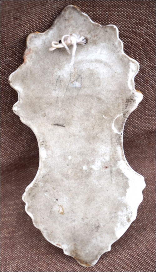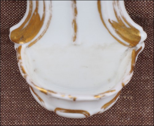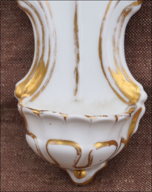 Holy Water Font showing the Holy Cross in gilt porcelain made in Paris during the 1850's Napoleon III period. 6 1/2" height 3" width. Perfect condition as presented on the following pictures.