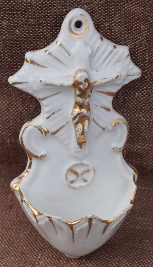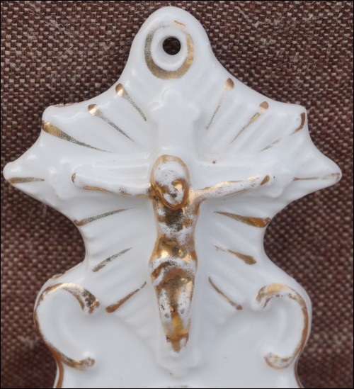 Holy Water Font Jesus Crucifix Cross Gilt Paris Porcelain 19th C