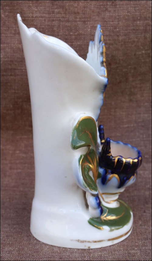 Holy Water Font Vase Gilt Enameled Porcelain Valentine 1850