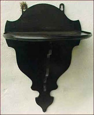 Large scaloped chapel or church wall shelf for statue made about 1870. it is in solid wood darl glaze in old time. Good condition. 26" tall 16"7/8 width 15" depth.