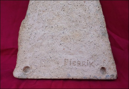 Vintage pieta in glazed stoneware wall hanging statue made by Pierrik in Brittany France during the 1980's. It's signed on the back.11 1/2" (29.2cm) height, 8 1/4" (21cm) width. Perfect condition as shown by the following pictures.