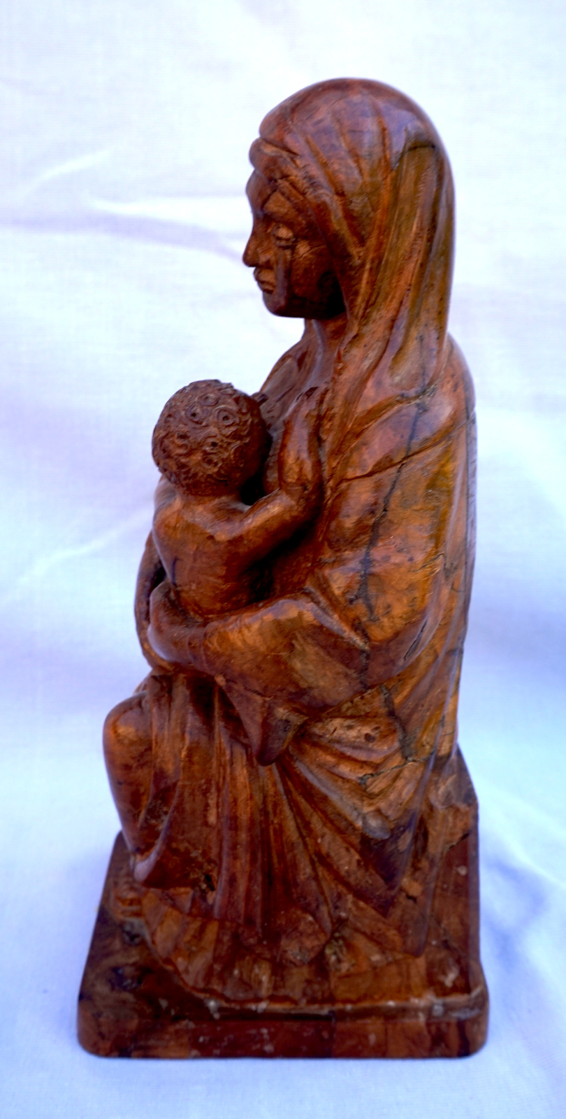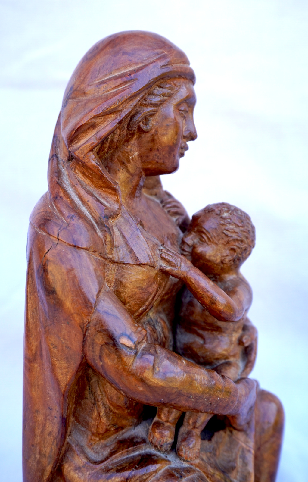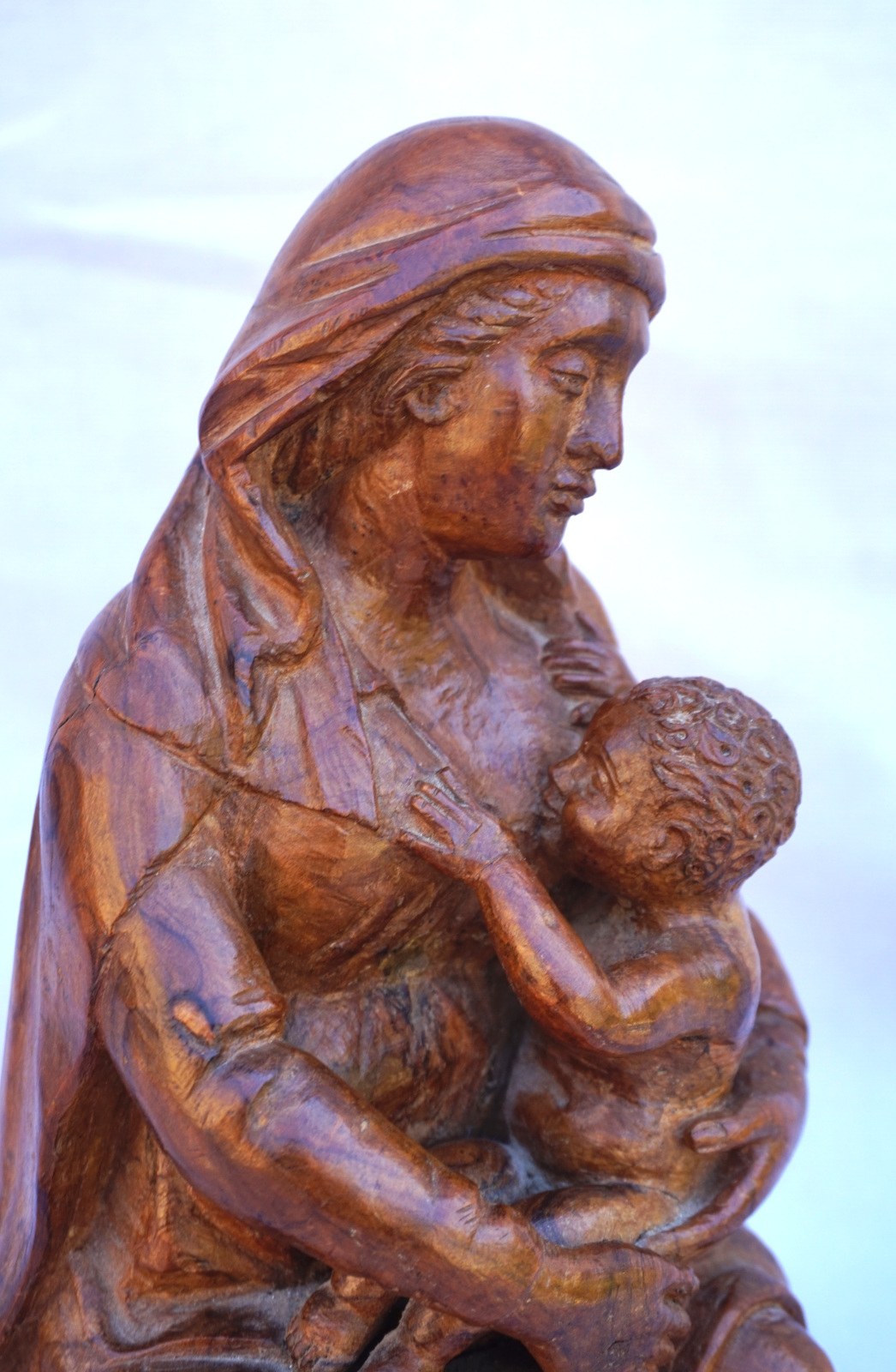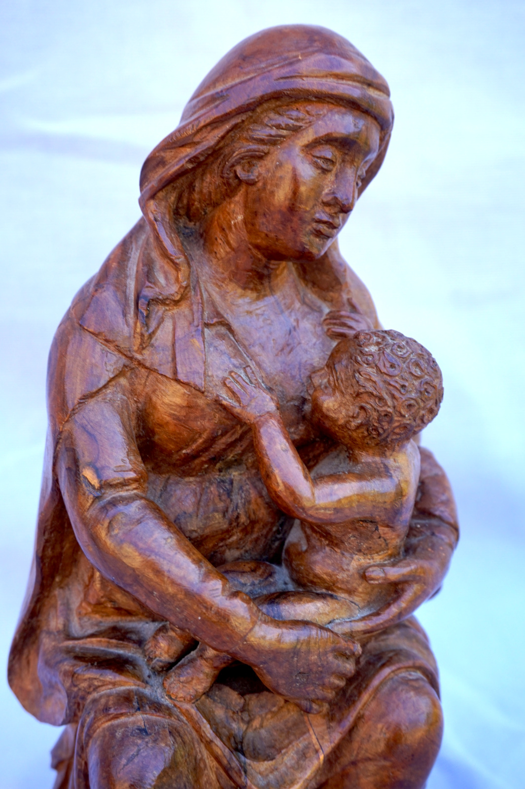 Virgin Mary Nursing Jesus Child Olive Wood Carved Sculpture Figure Provence