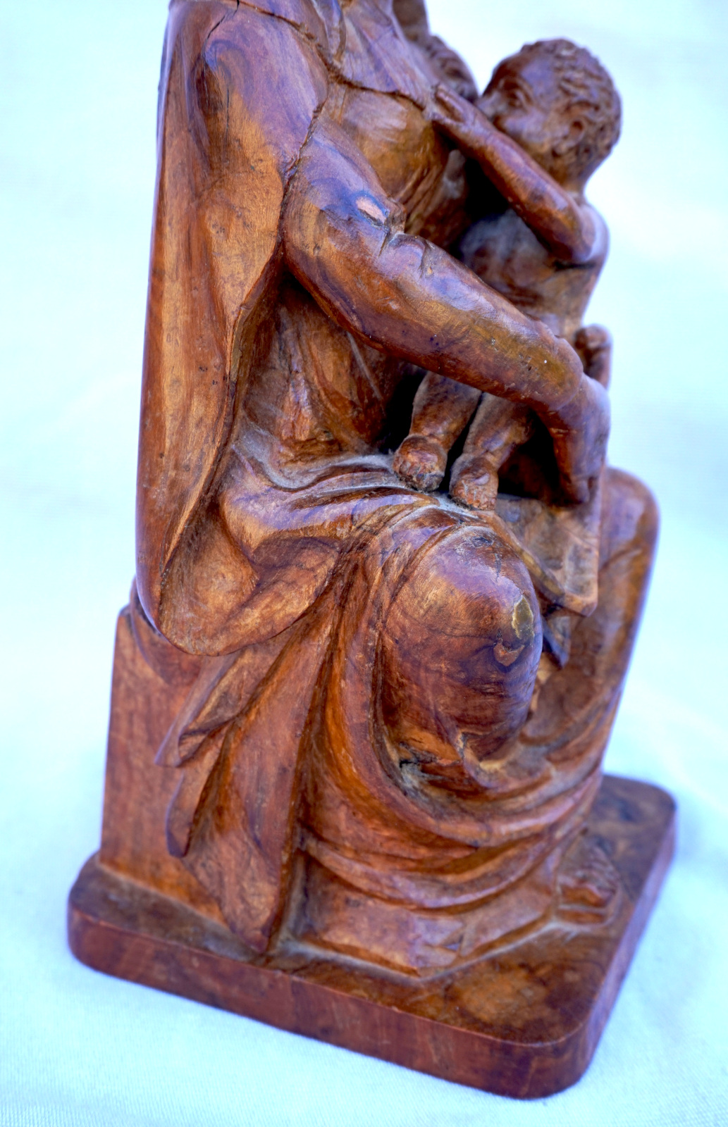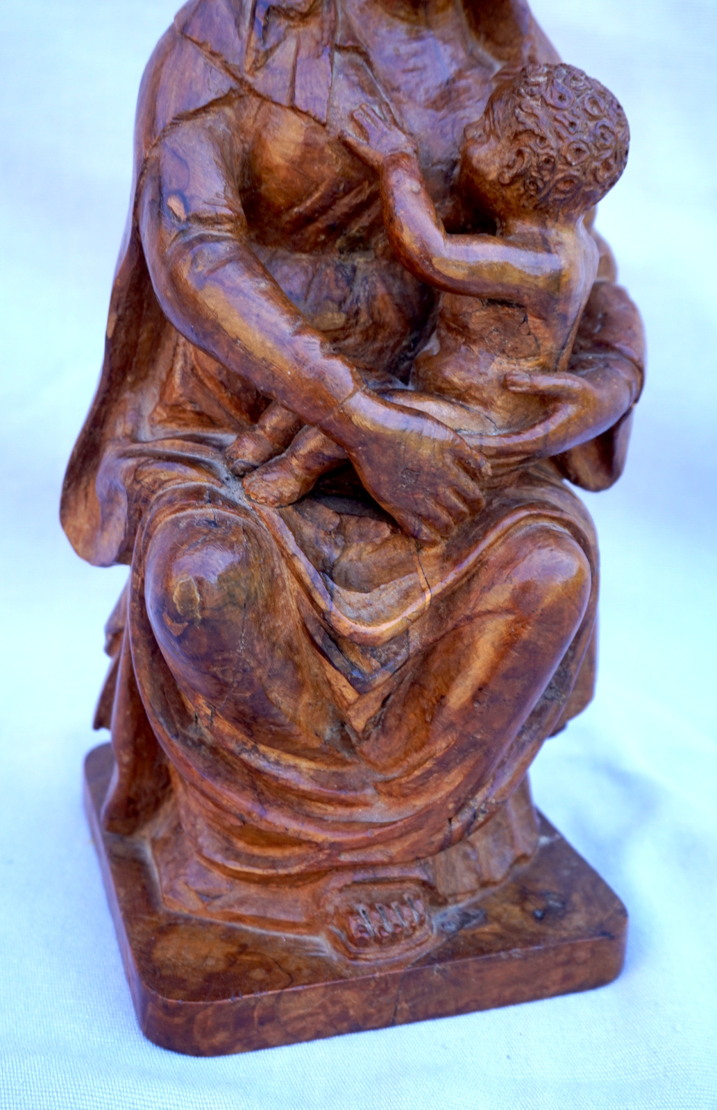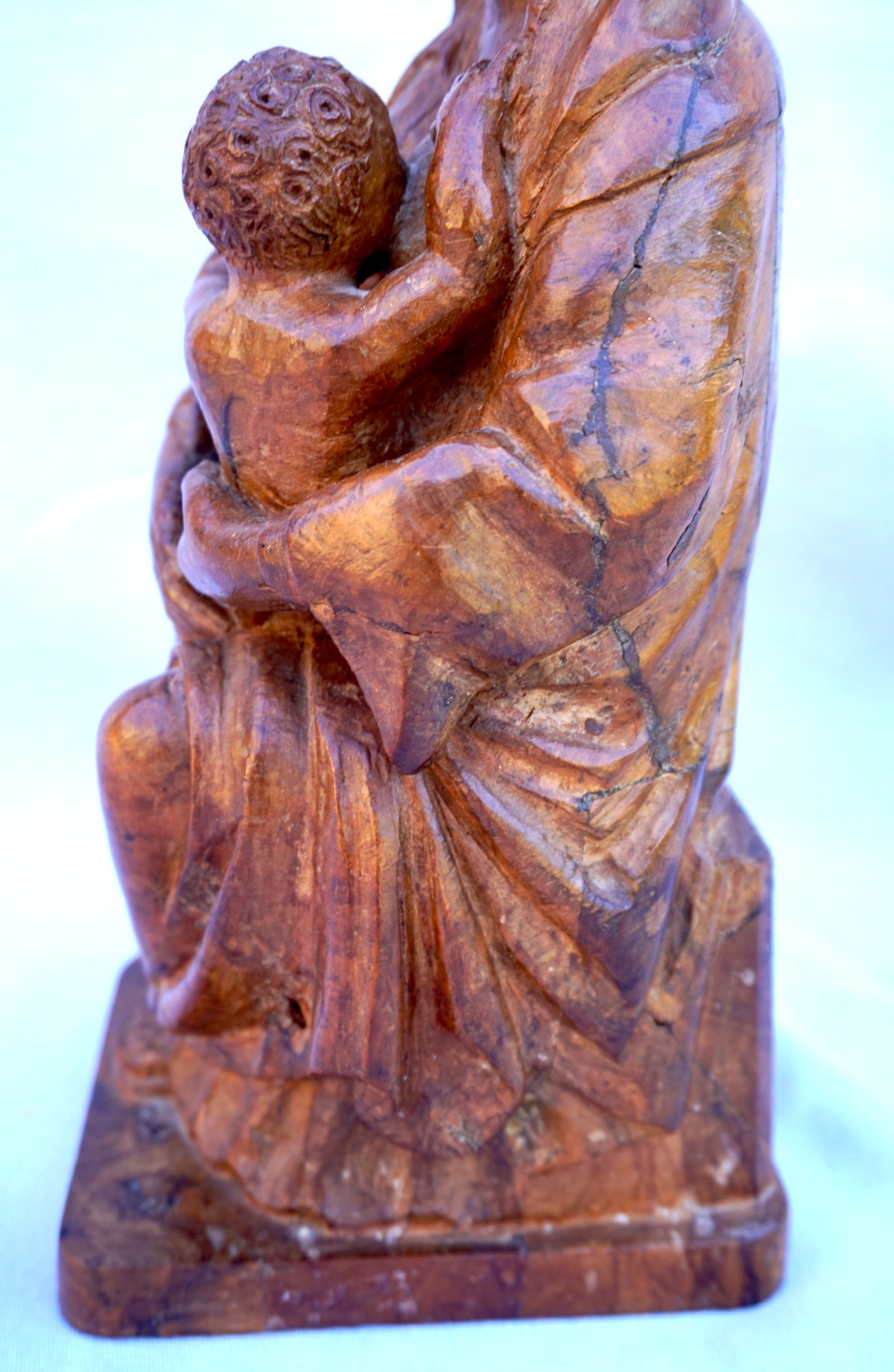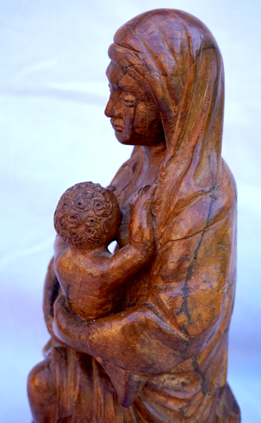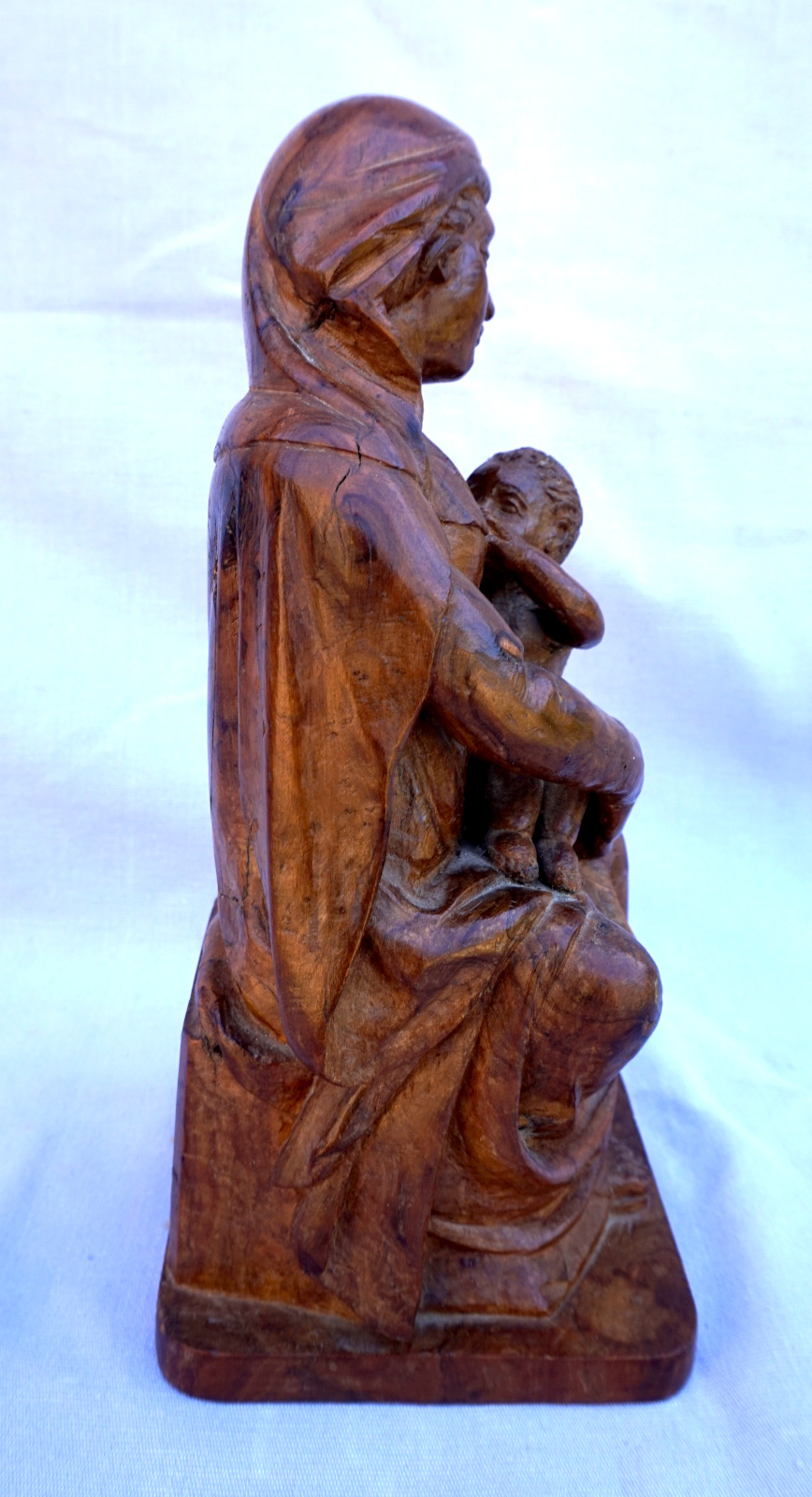 Virgin Mary Nursing Jesus Child Olive Wood Carved Sculpture Figure Provence