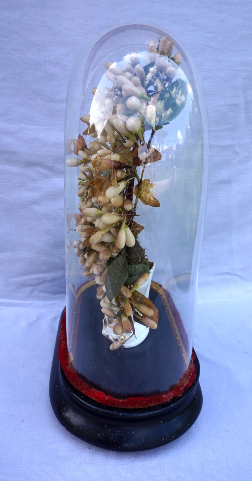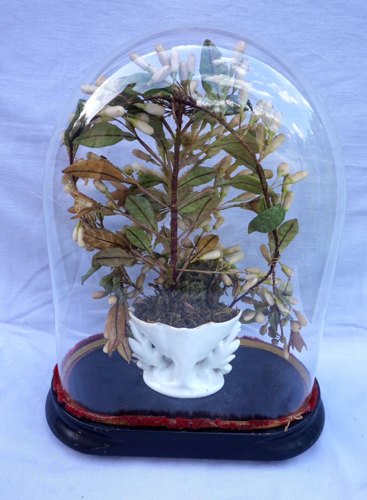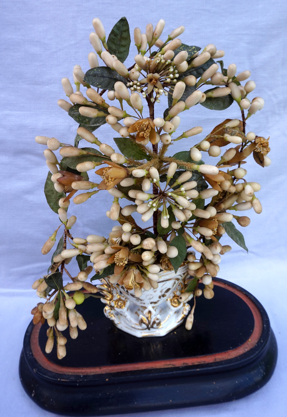 Bridal Wedding Dome Glass Orange Blossom Gilt Porcelain Vase Late 19th C