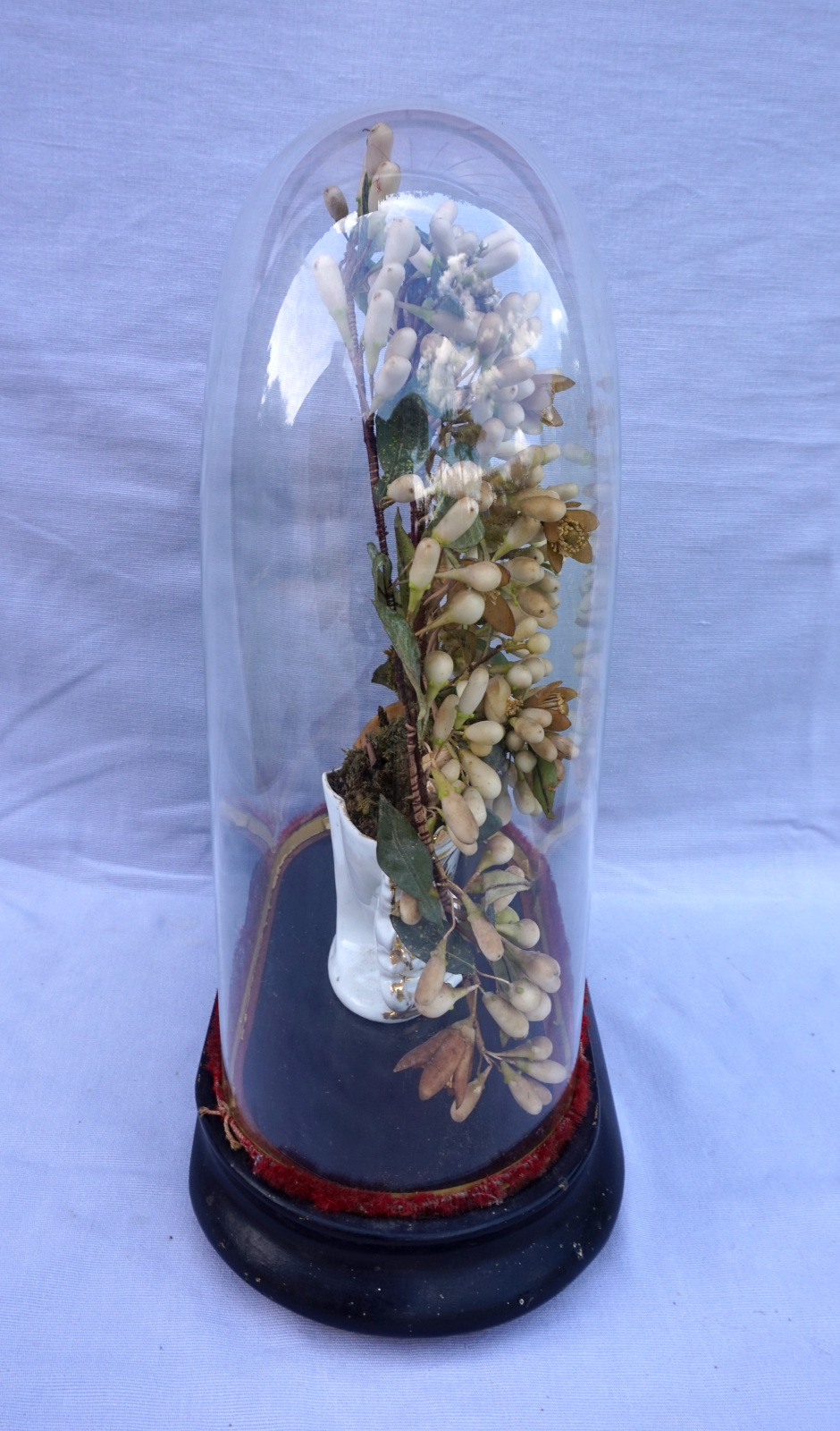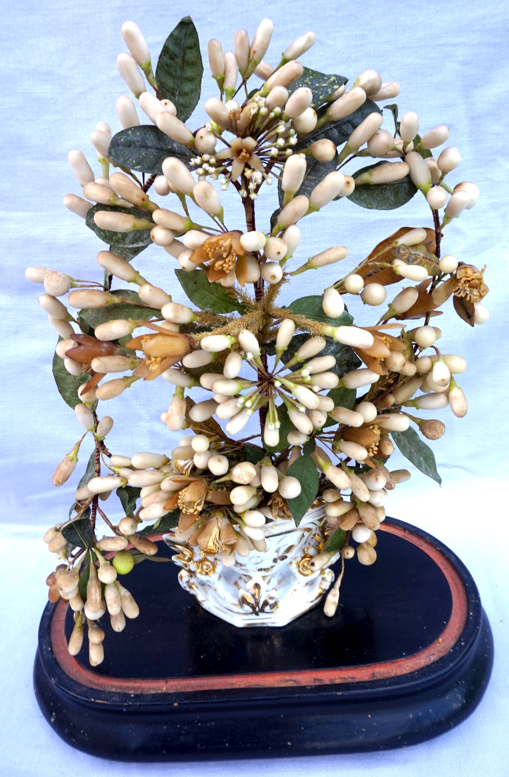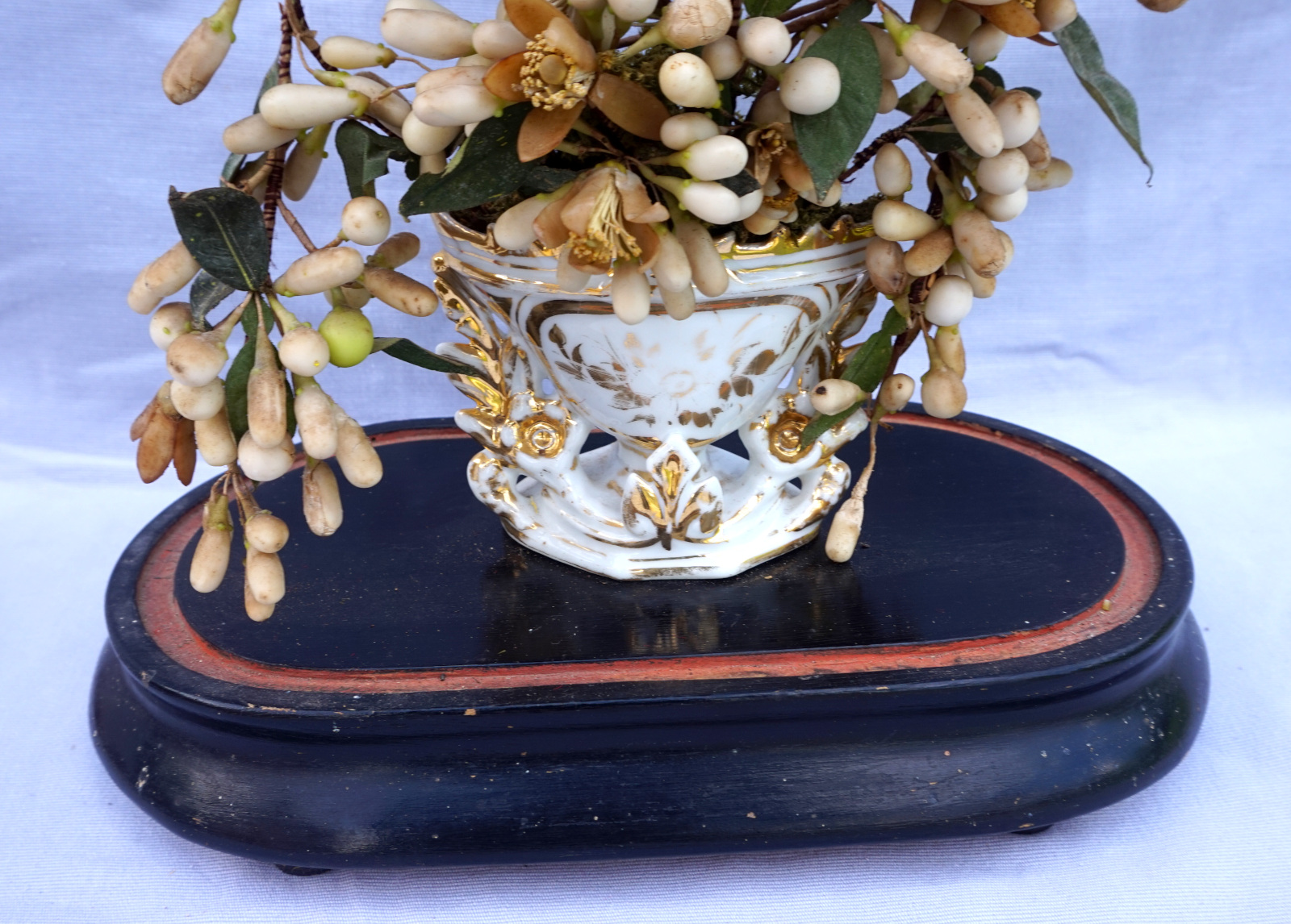 Bridal Wedding Dome Glass Orange Blossom Gilt Porcelain Vase Late 19th C
