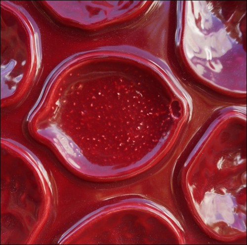 Vintage burgundy red oyster plate made by the Niderviller studio during the 60's.It's shaped with 6 shell compartments and one for the lemon or the butter. Perfect condition. 9 7/8" diameter. It's signed on the back.