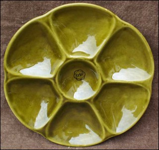 For our French-speaking friends Assiette à huîtres publicitaire de la manufacture de Gien, vers 1960-70. Elle est en bon état. Diamètre 25 cm.