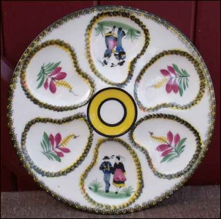 French Majolica Dancers Oyster Plate Henriot Quimper