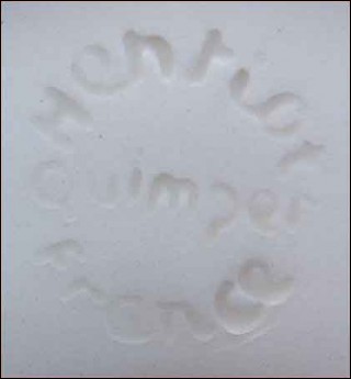 This oyster plate has been made by the famous Henriot Quimper manufacture around 1950. It has a hand painting floral decor and dancers and musicians in traditional costume on a cream background. Good condition a tiny chips. It's signed on the back with the manufacture marks. 9"1/4 diameter.